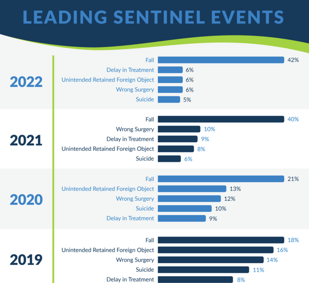 The Joint Commission reports that, in 2022, inpatient falls represented over 42% of all sentinel events i.e., unanticipated incidents causing death or serious injury — and the number has continued to rise.
